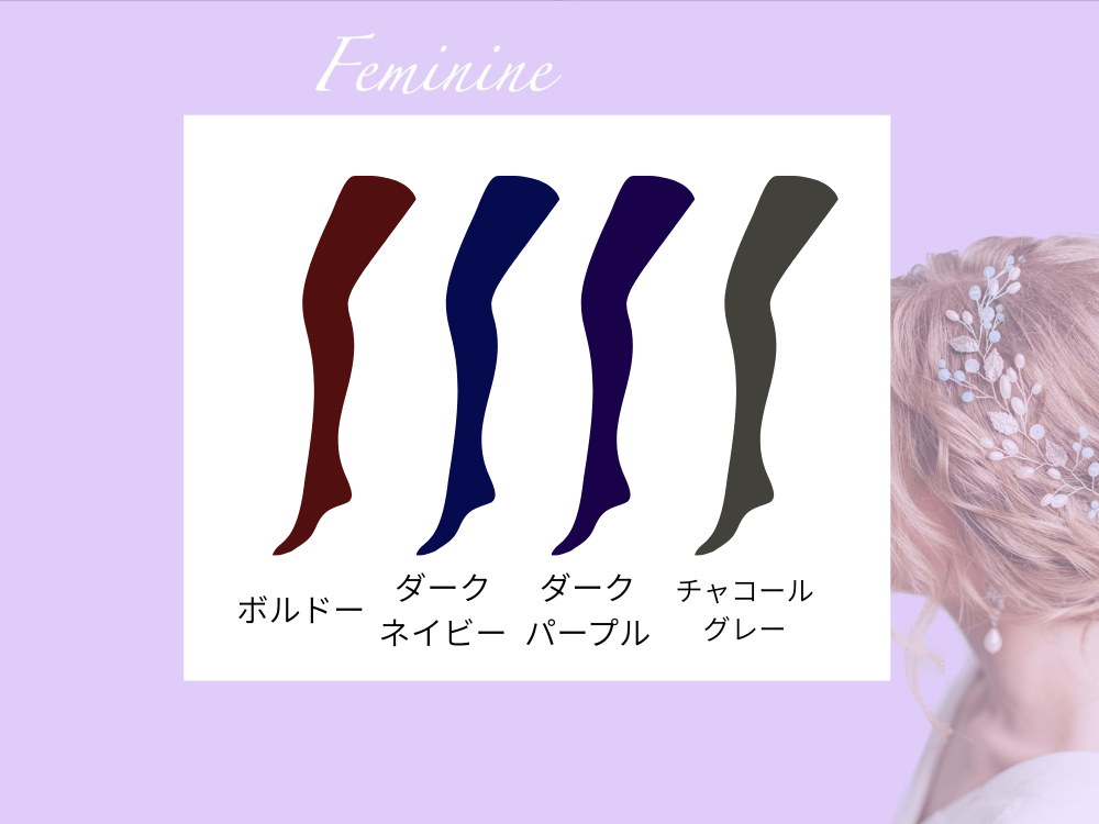顔タイプフェミニンが似合うタイツの色